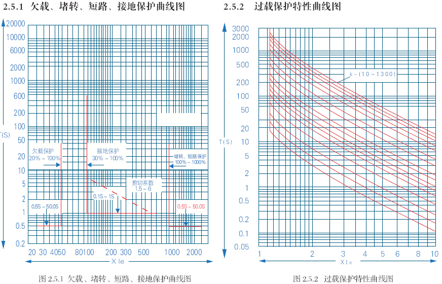 控制器提供了多種保護方式:過載保護、堵轉保護、欠載保護、欠功率保護、相序保護、缺相/不平衡保護、接地保護、漏電保護、欠電壓保護、過電壓保護、過熱保護外部故障保護(工藝聯鎖保護)、起動加速超時保護、最大允許分段電流。