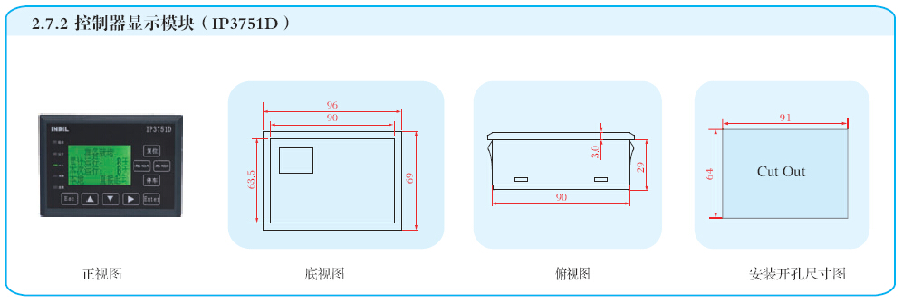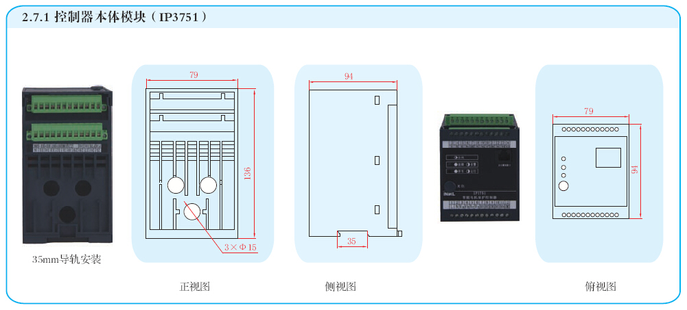 IP3751智能電機保護控制器(以下簡稱控制器)是新一代全功能的電機保護控制器。在電機發生過熱、過載、短路、堵轉、欠載、欠功率、欠壓、過壓、相序、缺相/不平衡、接地、漏電和起動加速超時等故障時予以保護,同時可實現測量、顯示、通訊、控制、診斷和故障管理等功能。