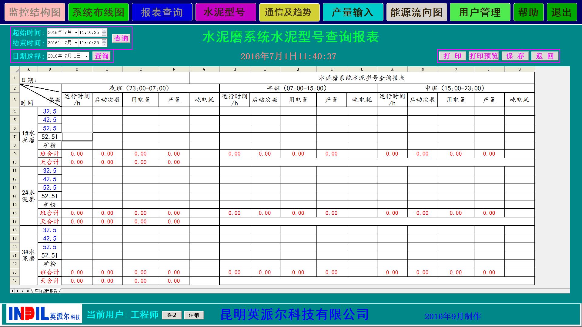 管理系統(tǒng)自動(dòng)生成的電能信息統(tǒng)計(jì)圖形、曲線和報(bào)表,以班、日、周、月、年為周期的電能耗統(tǒng)計(jì)報(bào)表,報(bào)表類型分為電壓等級(jí)、車間、重要耗能設(shè)備三個(gè)層次,報(bào)表能以EXCEL類型導(dǎo)出。